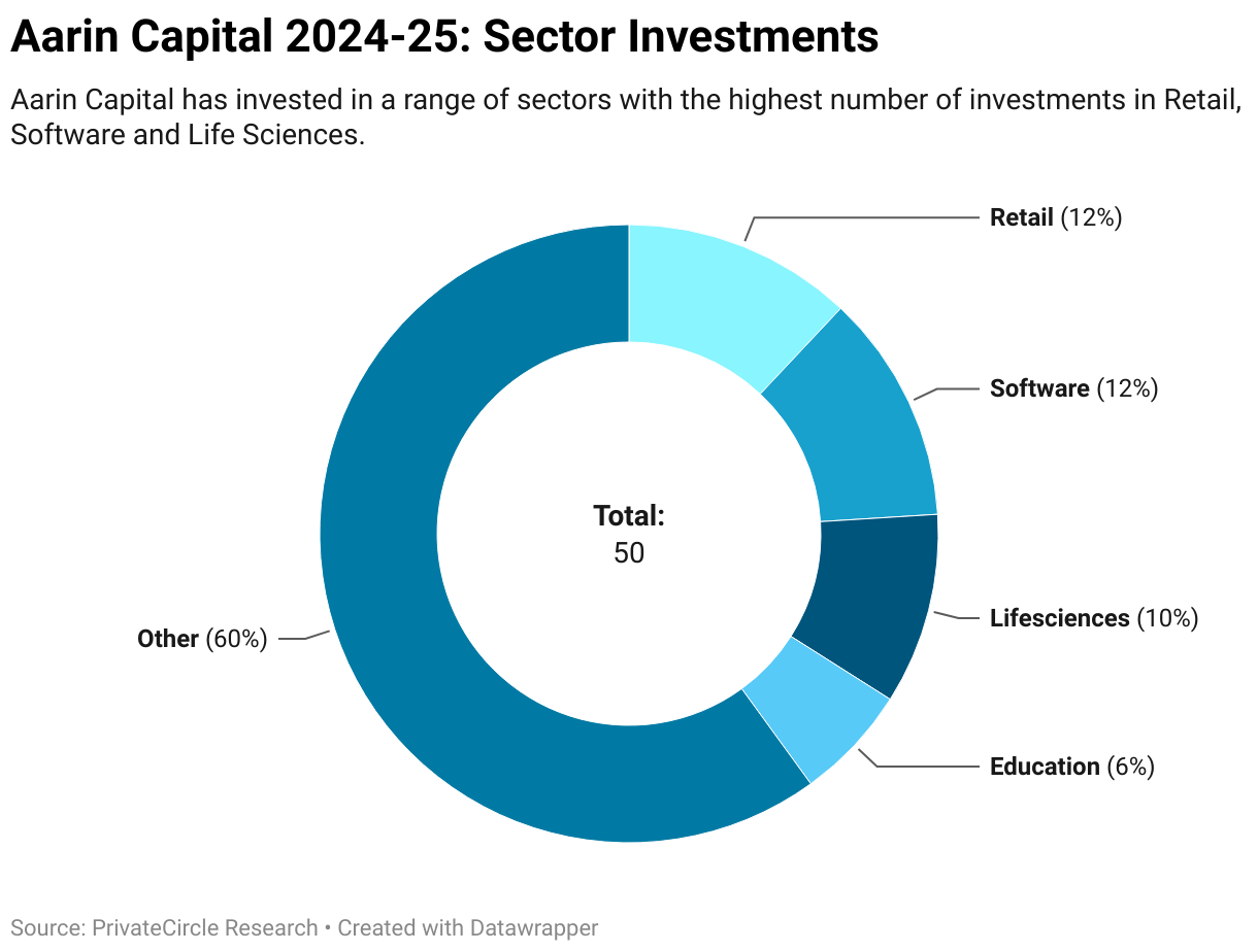 Aarin Capital has invested in a range of sectors with the highest number of investments in Retail, Software and Life Sciences.