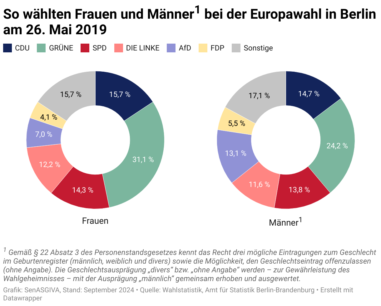 So wählten Frauen und Männer1 bei der Europawahl in Berlin am 26. Mai 2019