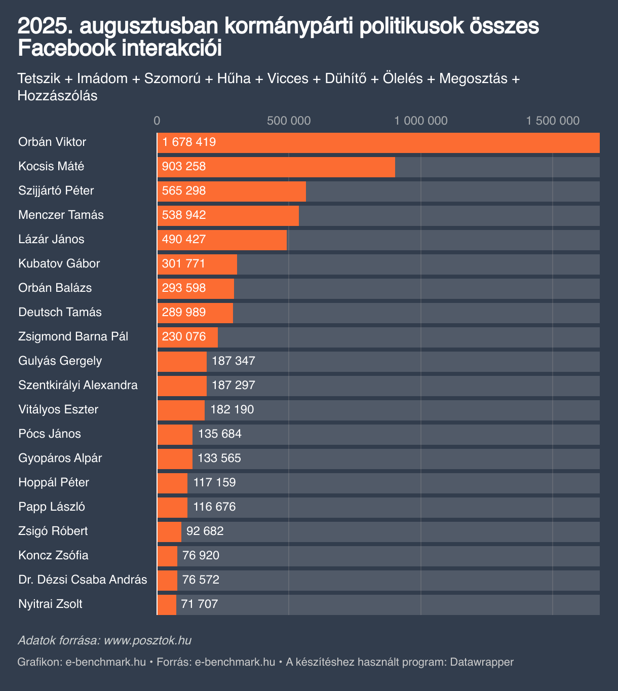 2025. augusztusban kormánypárti politikusok összes Facebook interakciói