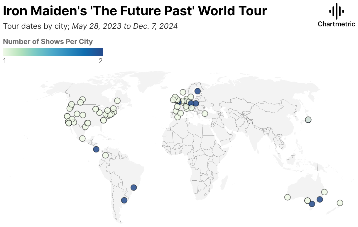 Tour dates by city; May 28, 2023 to Dec. 7, 2024