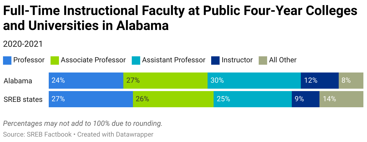 Full-Time Instructional Faculty at Public Four-Year Colleges and Universities in Alabama