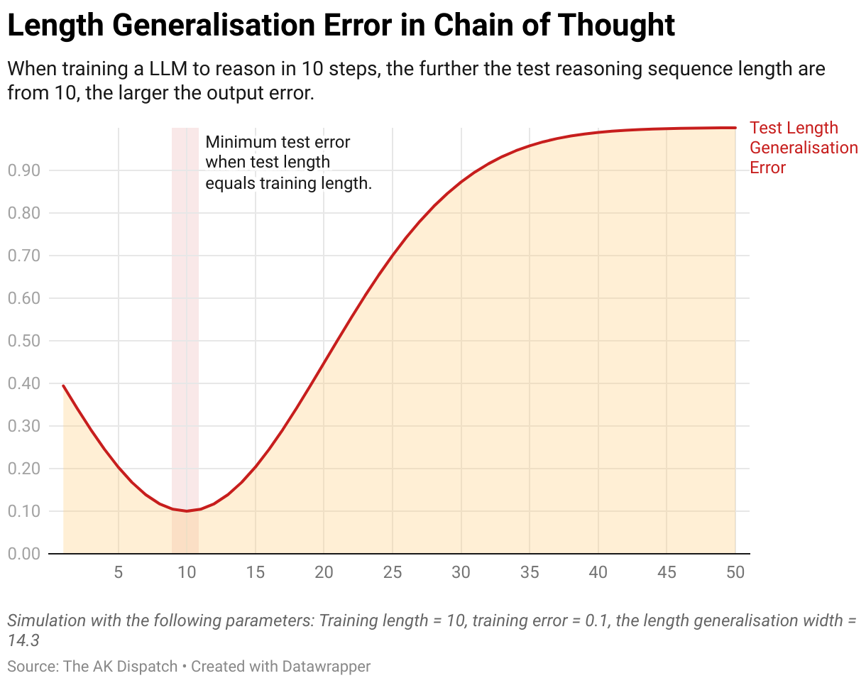 When training a LLM to reason in 10 steps, the further the test reasoning sequence length are from 10, the larger the output error.