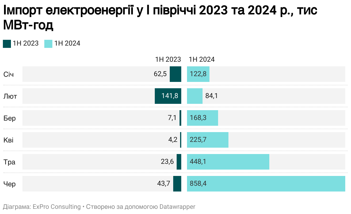 Імпорт електроенергії у І півріччі 2023 та 2024 р., тис МВт-год