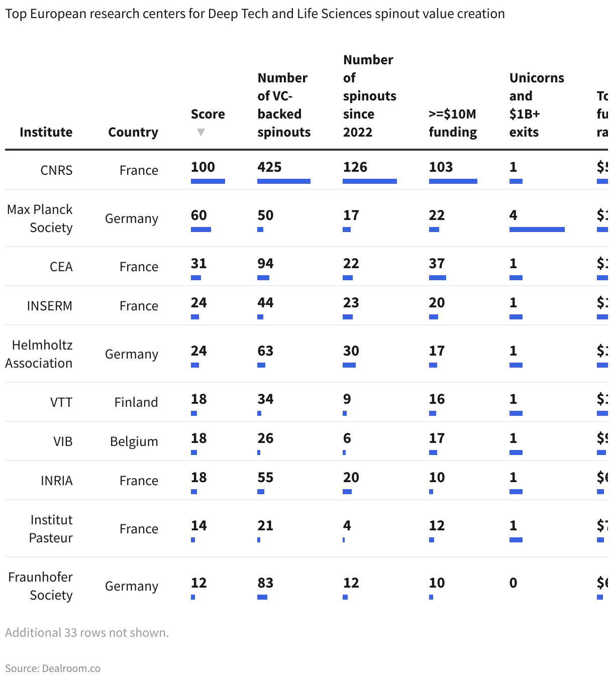 Top European research centers for Deep Tech and Life Sciences spinout value creation