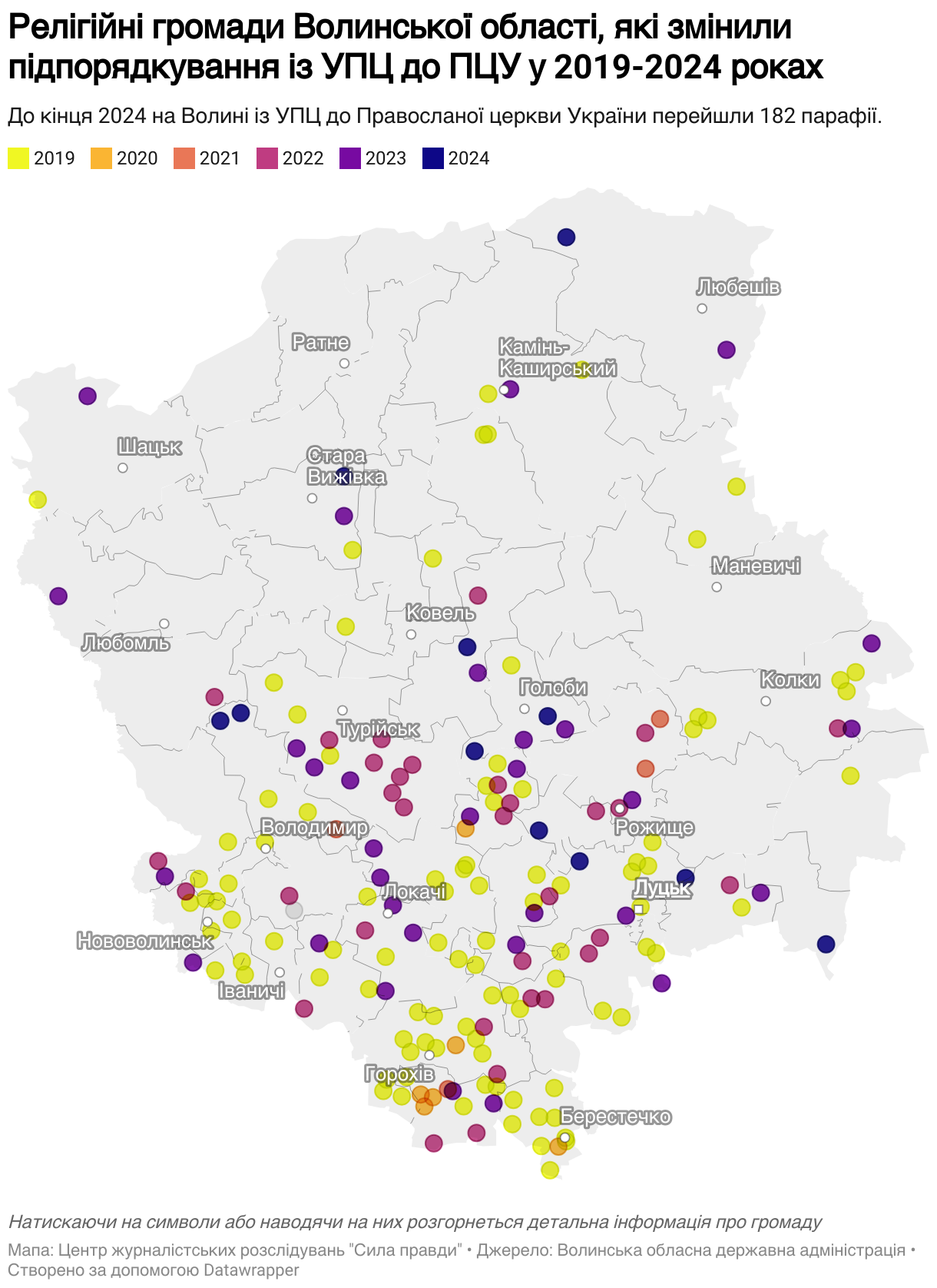 До кінця 2024 на Волині із УПЦ до Правосланої церкви України перейшли 182 парафії.