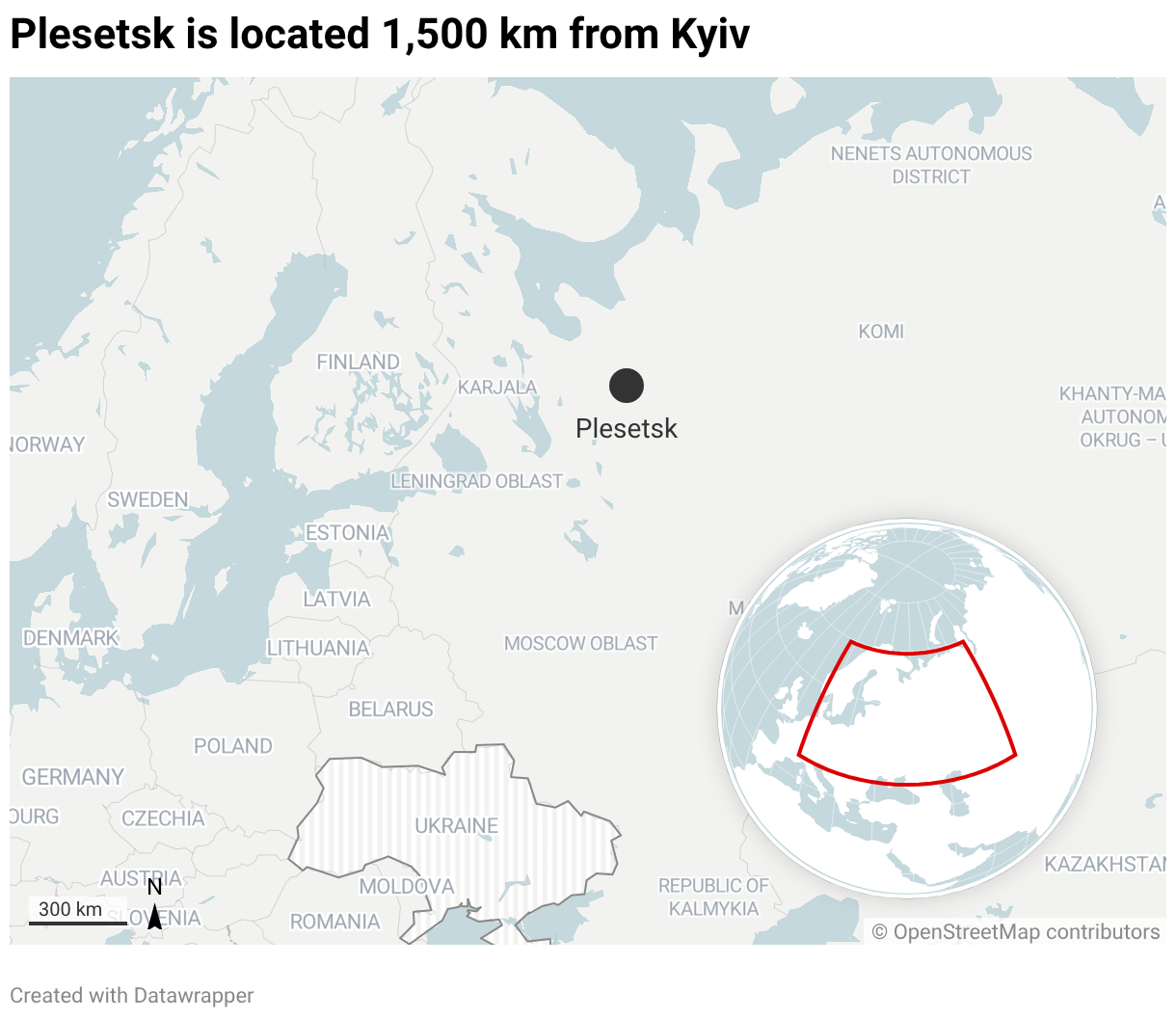 Plesetsk is located 1,500 km from Kyiv