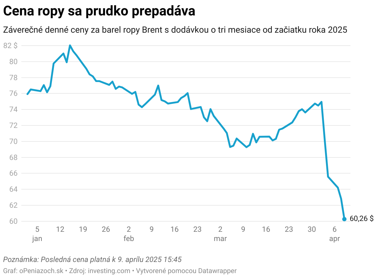 Záverečné denné ceny za barel ropy Brent s dodávkou o tri mesiace od začiatku roka 2025