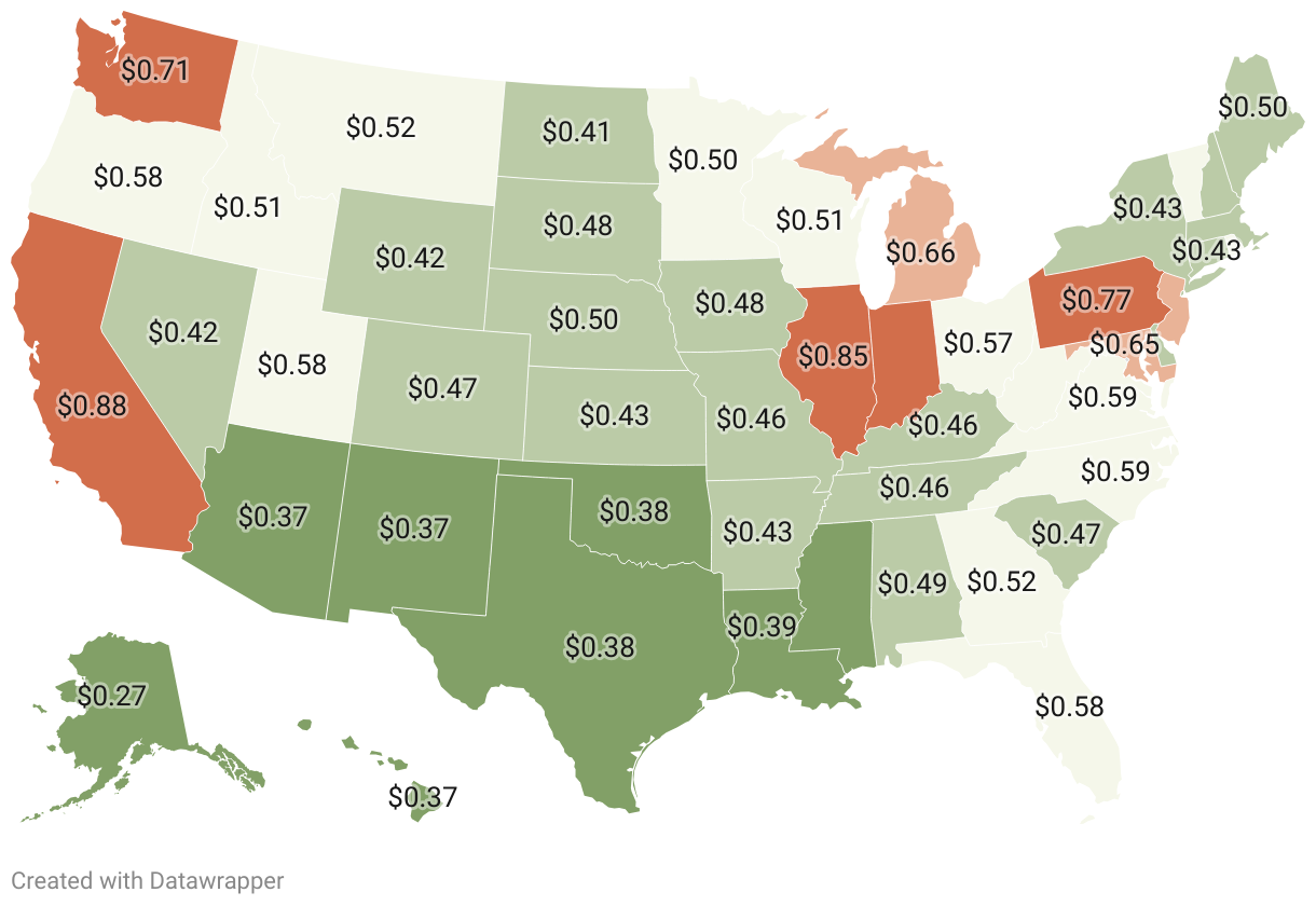 Federal, state and local gas taxes in each state, January 2025
