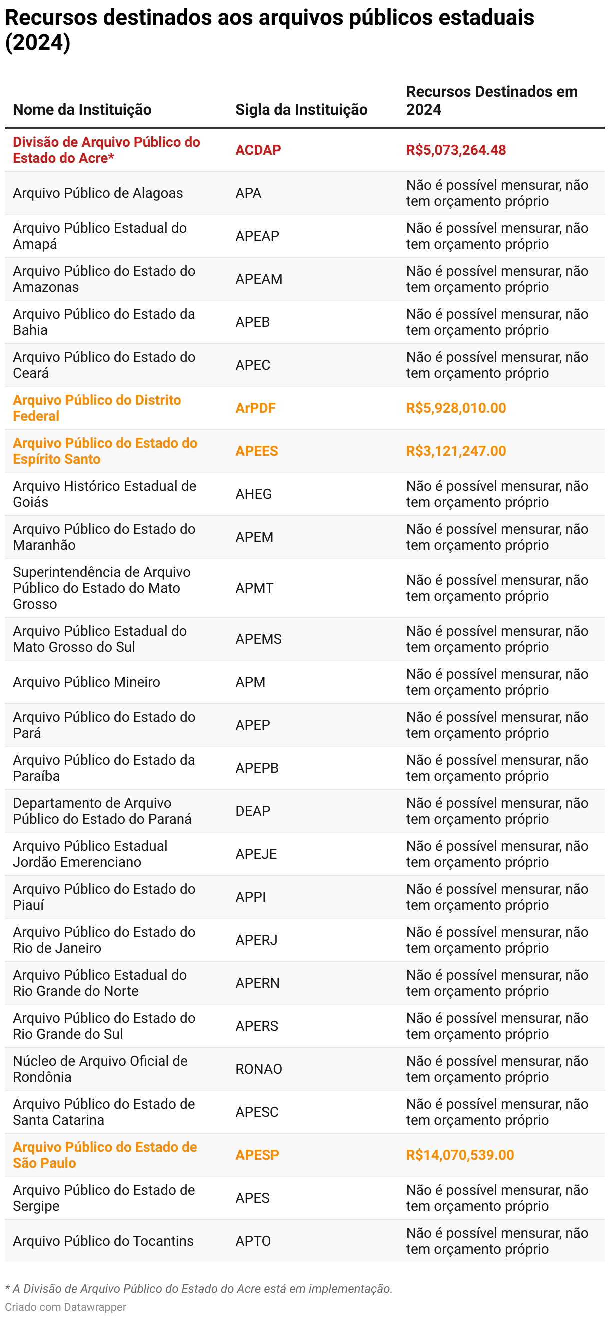 Recursos destinados aos arquivos públicos estaduais (2024)