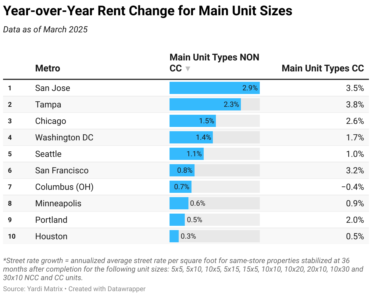 Year-over-Year Rent Change for Main Unit Sizes