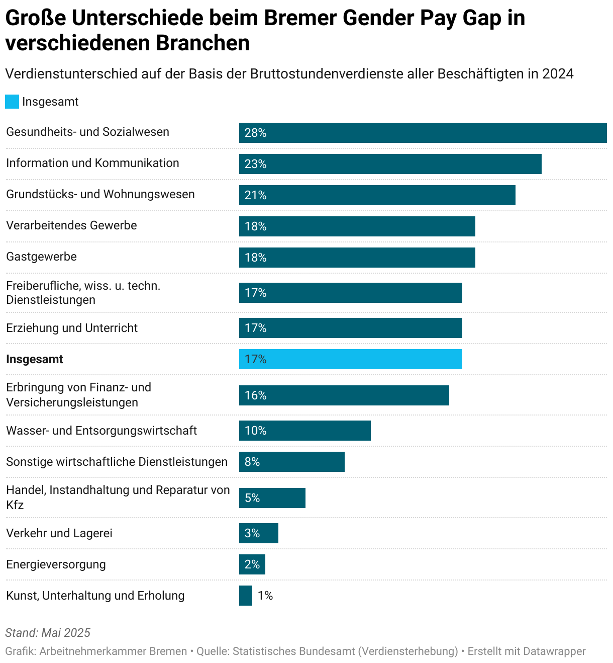 Verdienstunterschied auf der Basis der Bruttostundenverdienste aller Beschäftigten in 2024