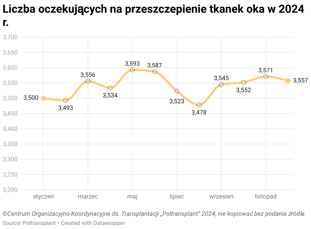 Liczba oczekujących na przeszczepienie tkanek oka w 2024 r.