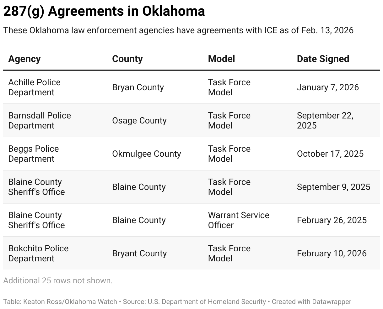 These Oklahoma law enforcement agencies have agreements with ICE as of Feb. 13, 2026
