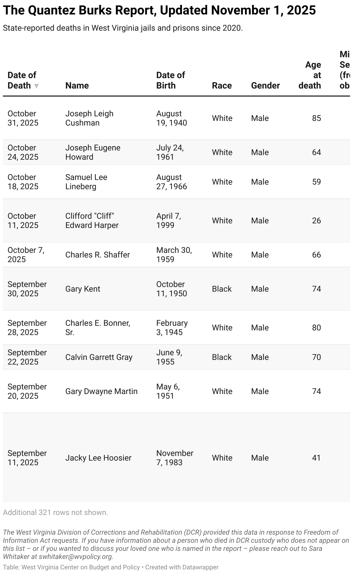State-reported deaths in West Virginia jails and prisons since 2020.