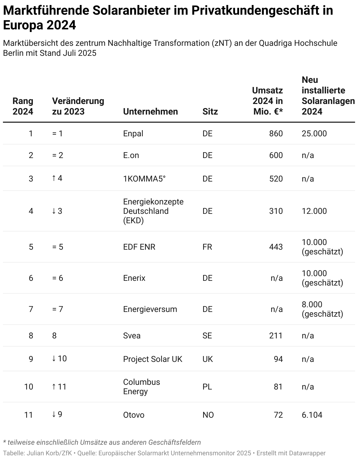 Marktübersicht des zentrum Nachhaltige Transformation (zNT) an der Quadriga Hochschule Berlin mit Stand Juli 2025