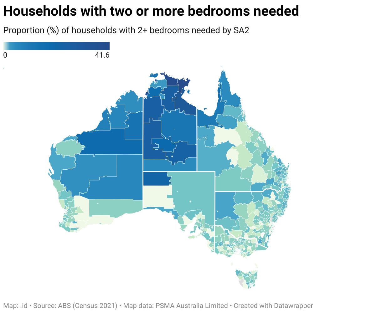 Proportion (%) of households with 2+ bedrooms needed by SA2