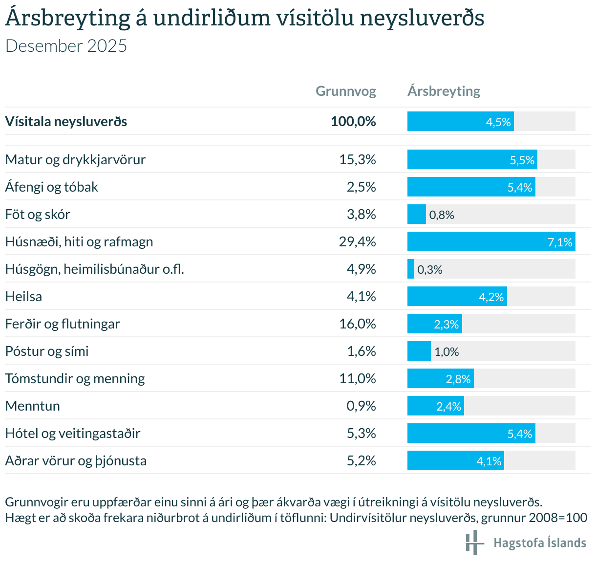 Ársbreyting á undirliðum vísitölu neysluverðs