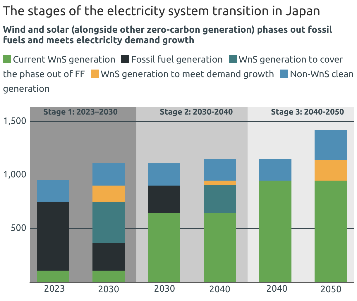 Wind and solar (alongside other zero-carbon generation) phases out fossil fuels and meets electricity demand growth
