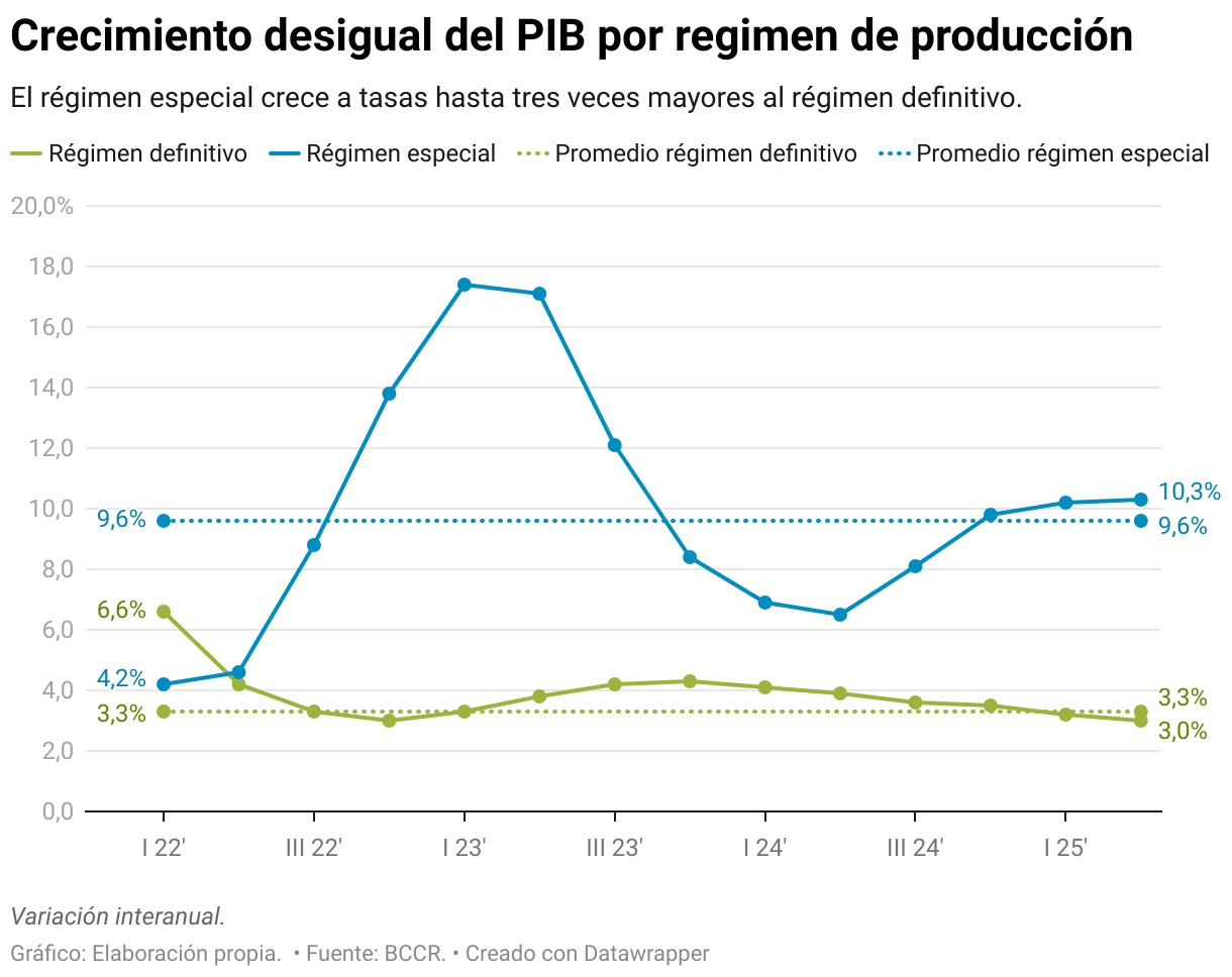 El régimen especial crece a tasas hasta tres veces mayores al régimen definitivo.