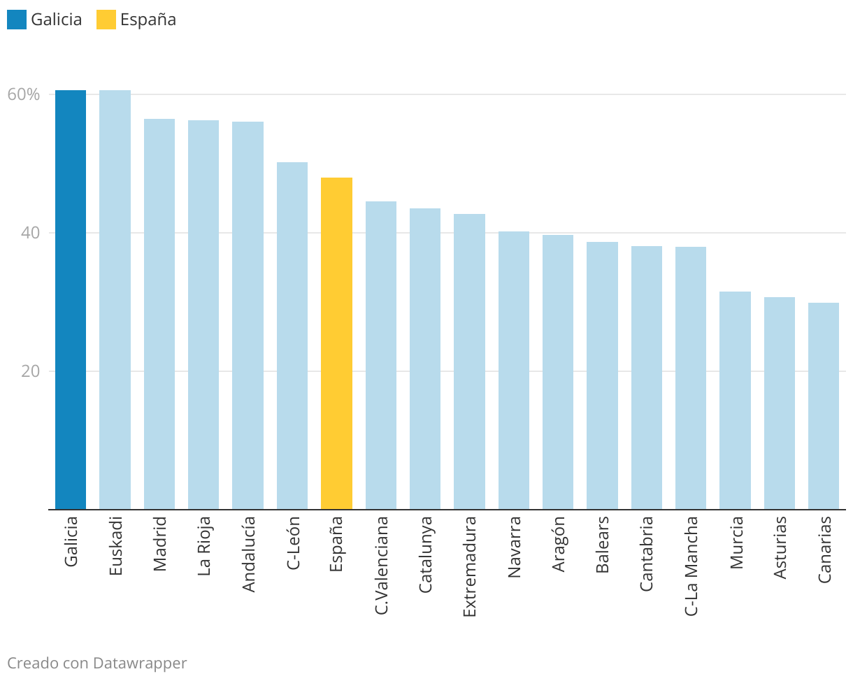 Taxa neta de escolaridade do alumnado de 0 a 2 anos no curso 23-24 por autonomías