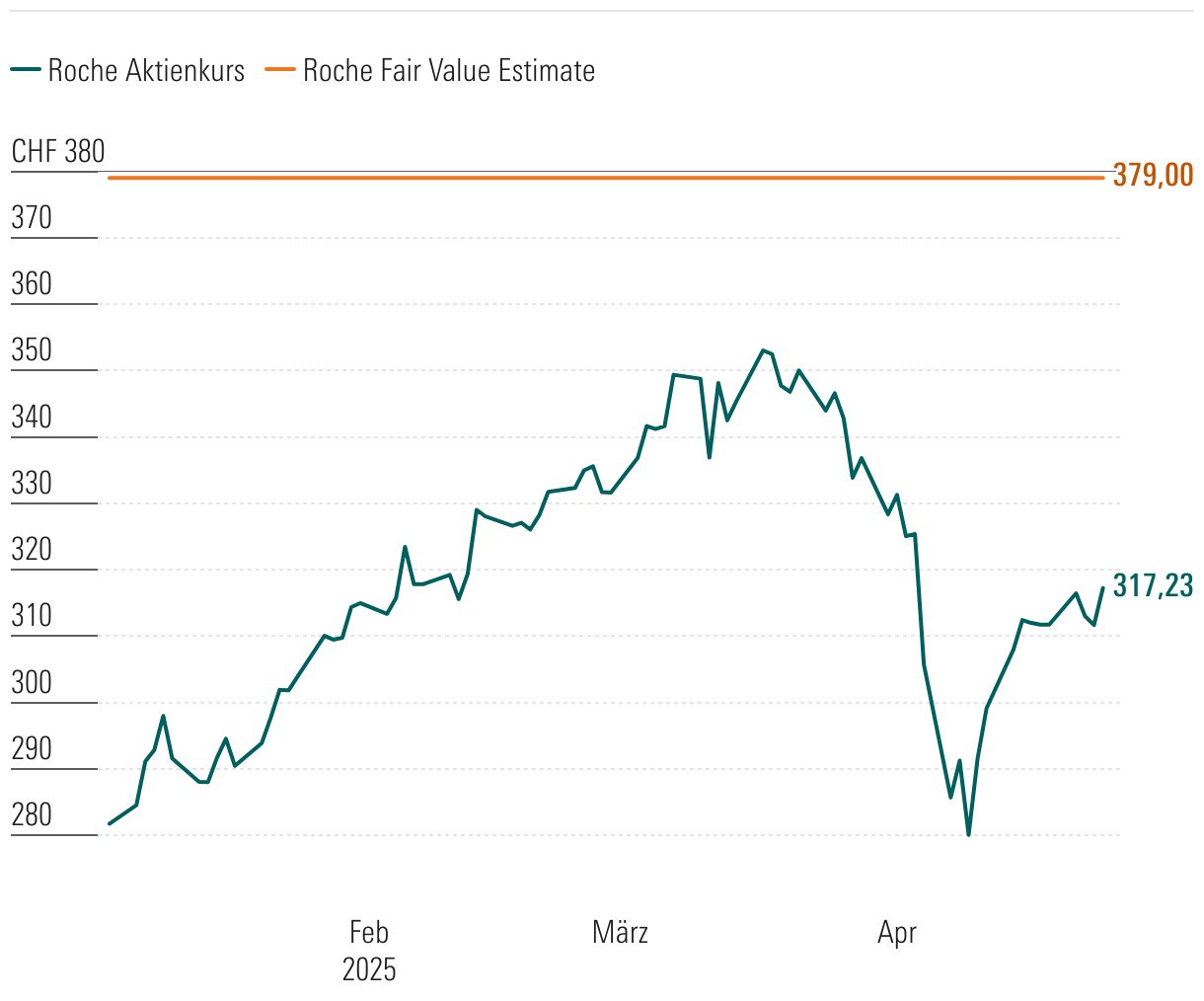 Liniendiagramm des Kurses gegenüber der Morningstar Fair Value Estimate für Roche.