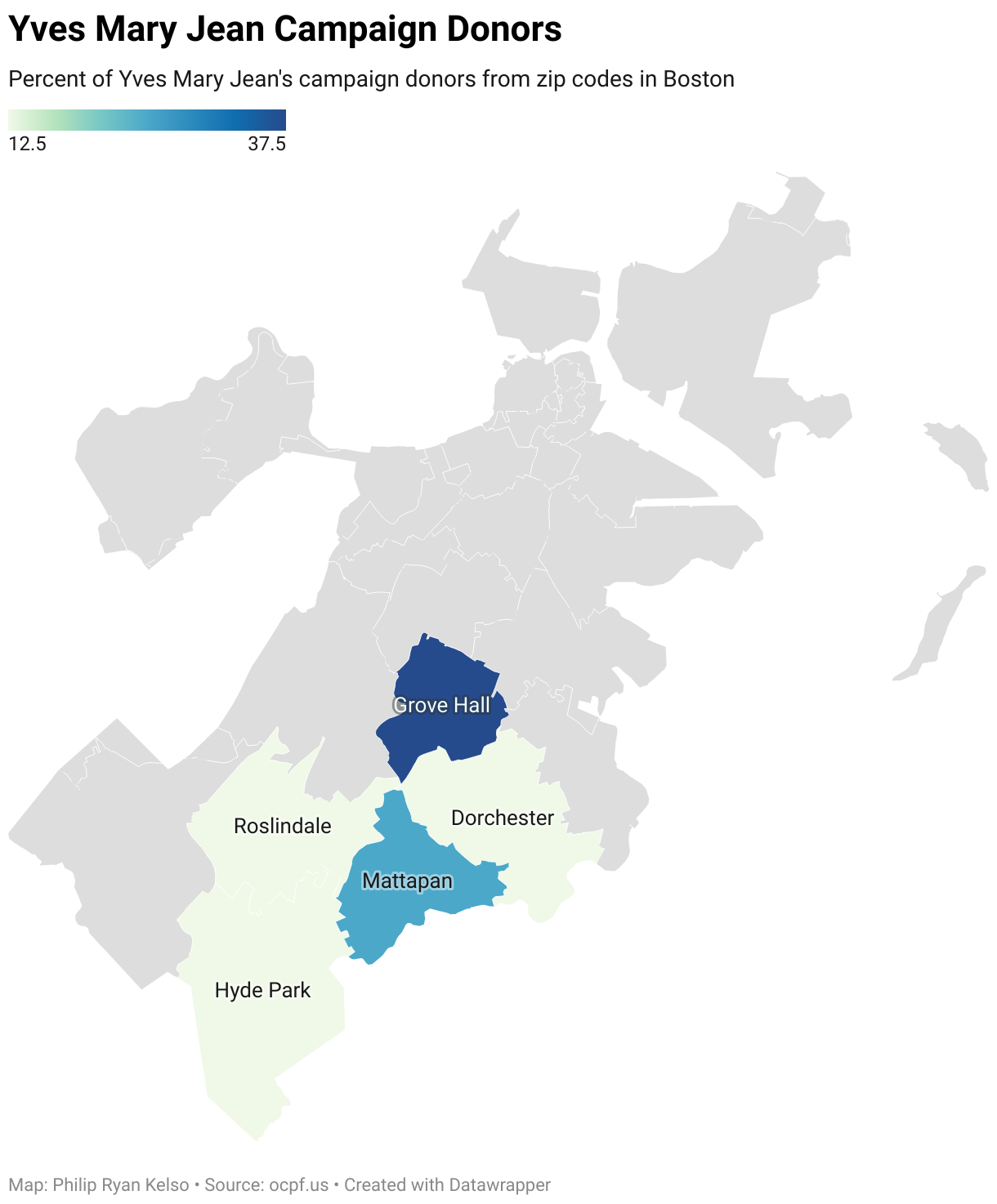 Percent of Yves Mary Jean's campaign donors from zip codes in Boston