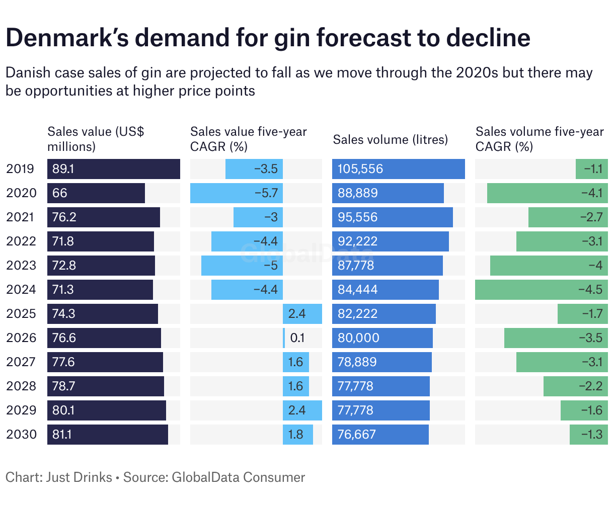 Danish case sales of gin are projected to fall as we move through the 2020s but there may be opportunities at higher price points