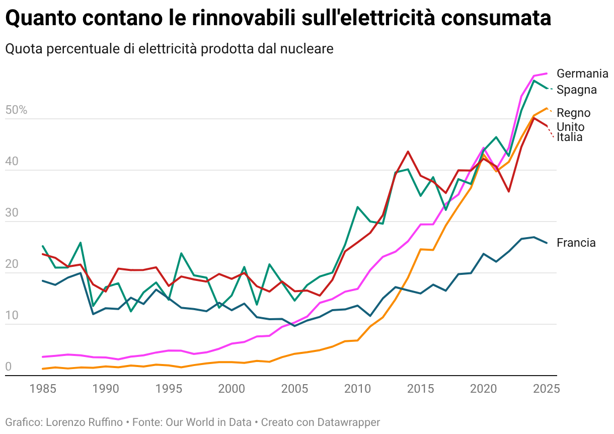 Quanto contano le rinnovabili sull'elettricità consumata