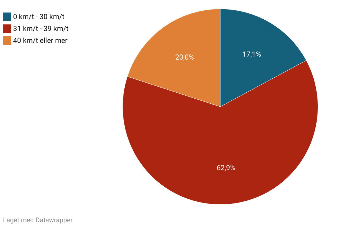 Det viser at 83% av bussturene i undersøkelsen endte med at fartsgrensen ble brutt, mens 17% av turene endte med at fartsgrensen ble overholdt.