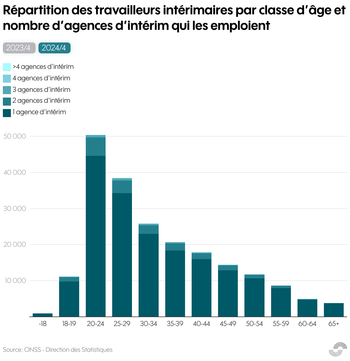 Répartition des travailleurs intérimaires par classe d’âge et nombre d’agences d’intérim qui les emploient