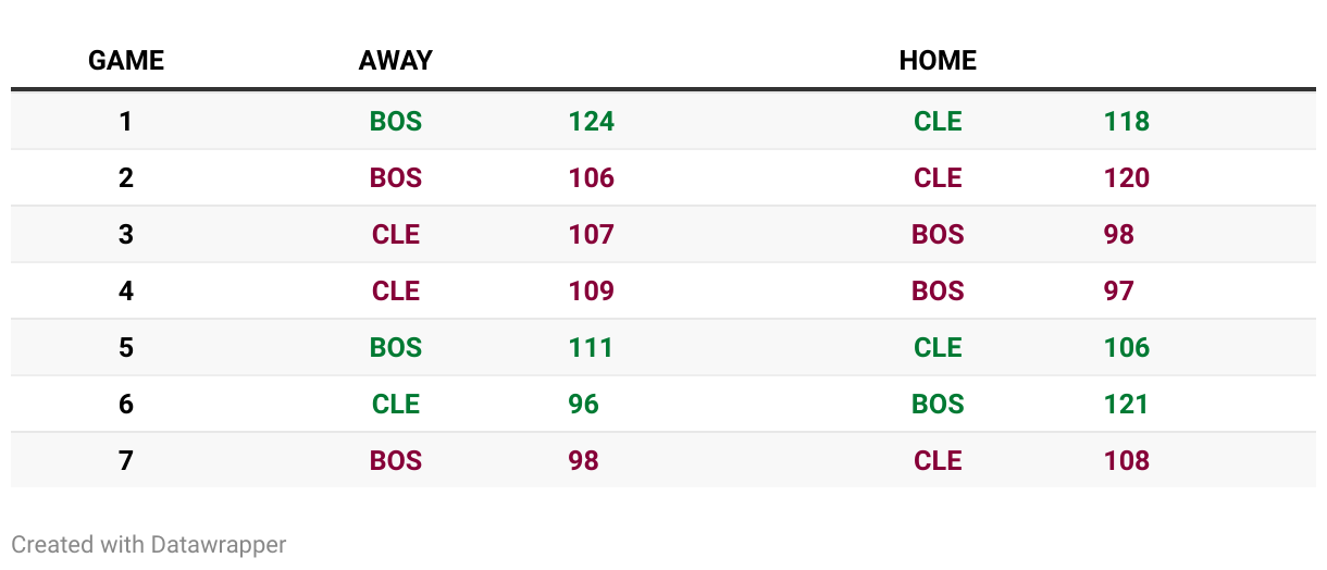 The C's fight back to force Game 7 after falling to 3-1, but the top-seeded Cavs take down the reigning champs and win the East.