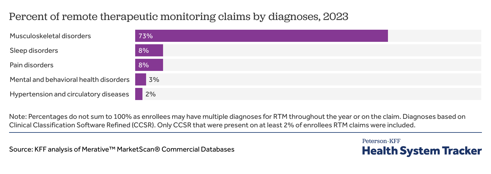 Percent of remote therapeutic monitoring claims by diagnoses, 2023
