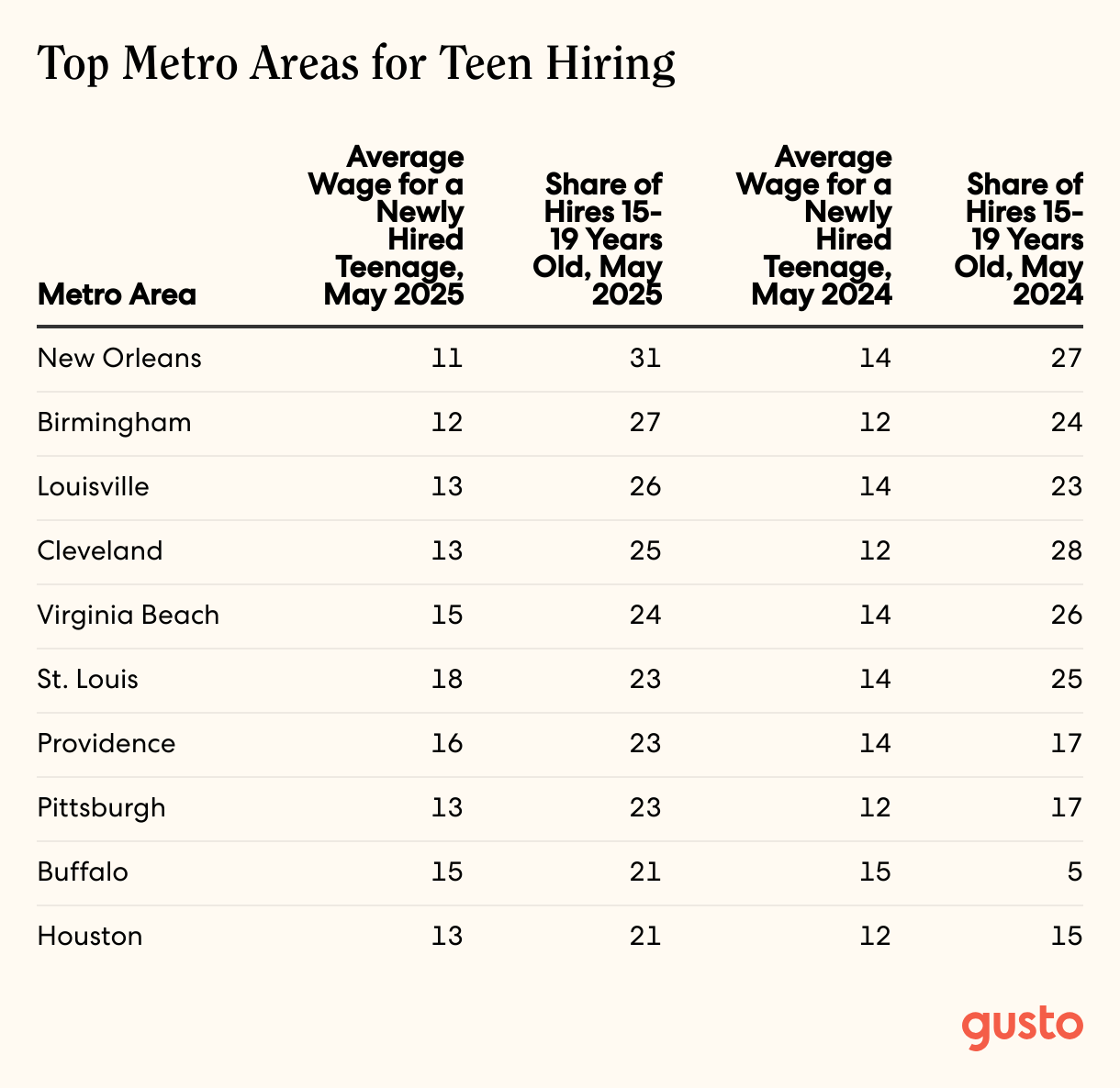 Top Metro Areas for Teen Hiring