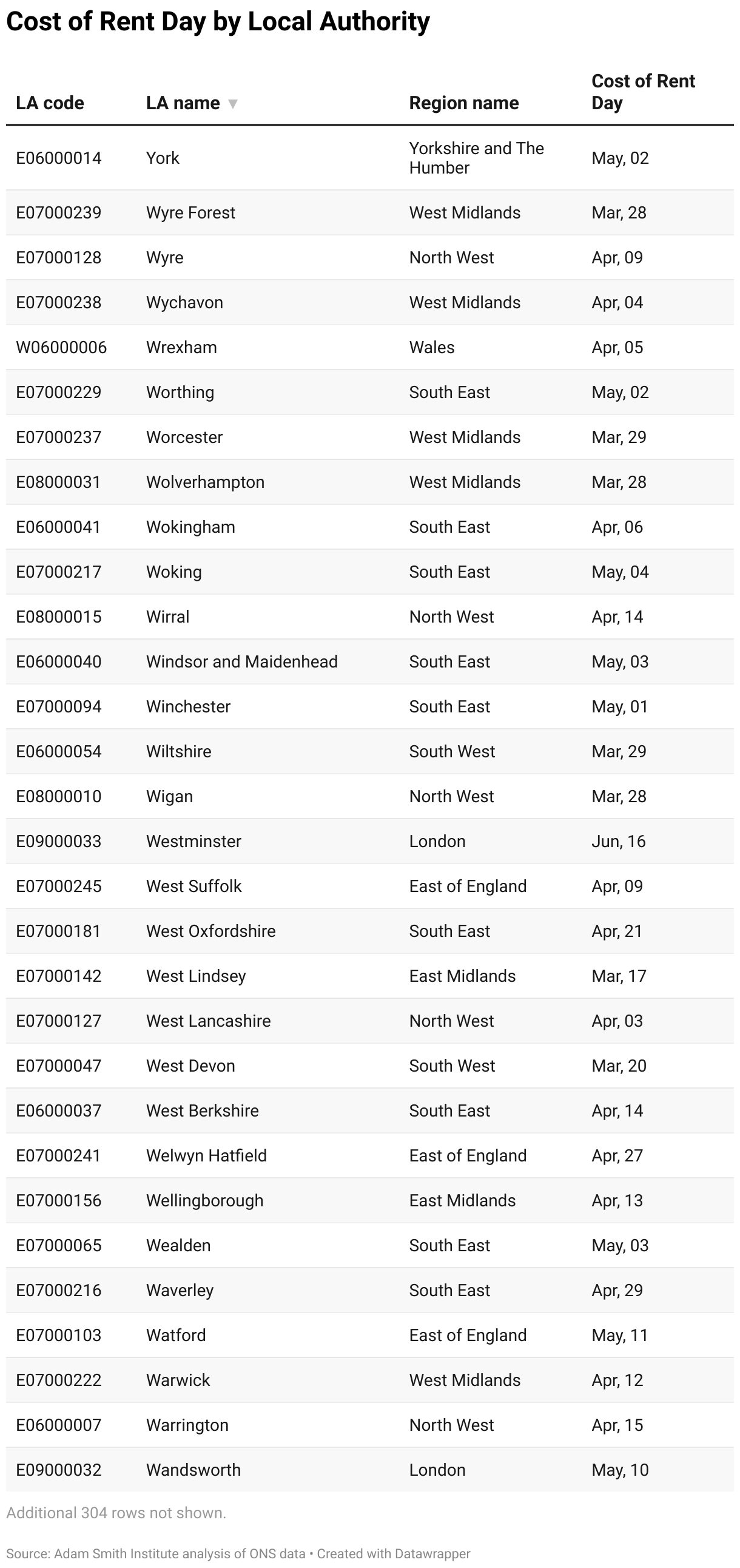 Cost of Rent Day by Local Authority