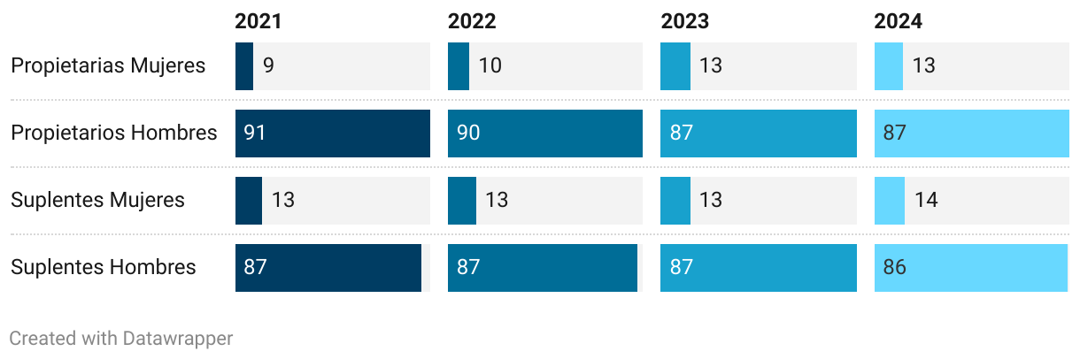 El porcentaje de consejeras propietarias permaneció igual con respecto a 2023.