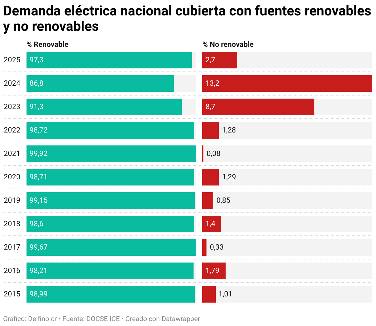 Demanda eléctrica nacional cubierta con fuentes renovables y no renovables