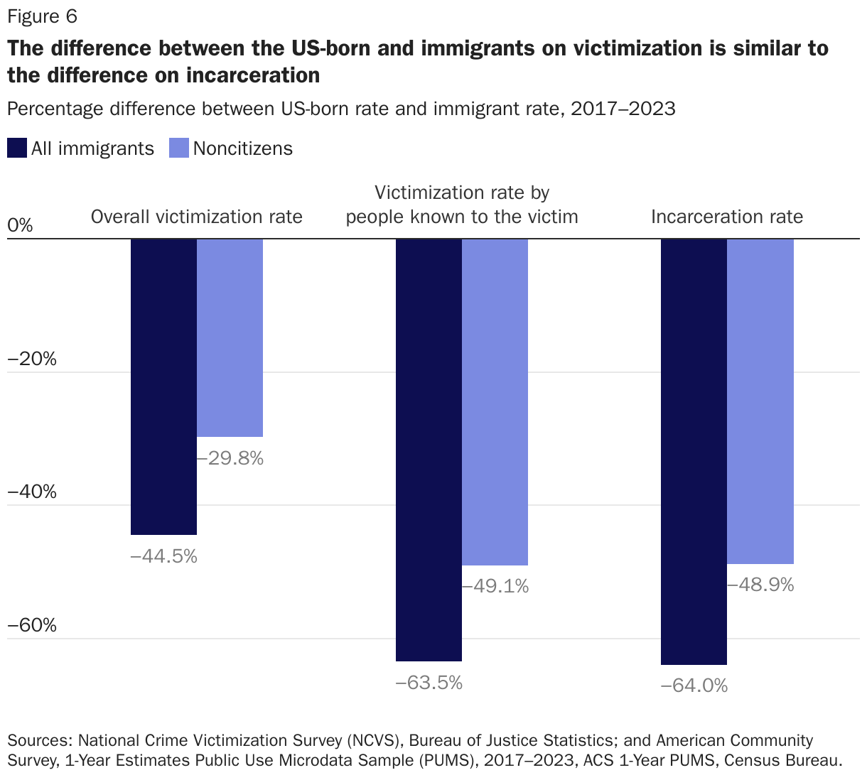 Percentage difference between US-born rate and immigrant rate, 2017–2023