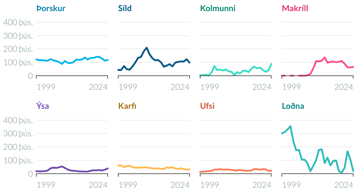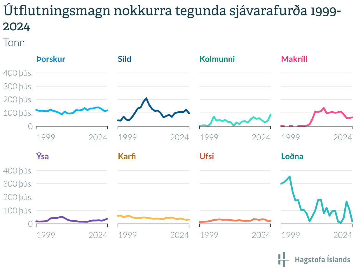 Útflutningsmagn nokkurra tegunda sjávarafurða 1999-2024