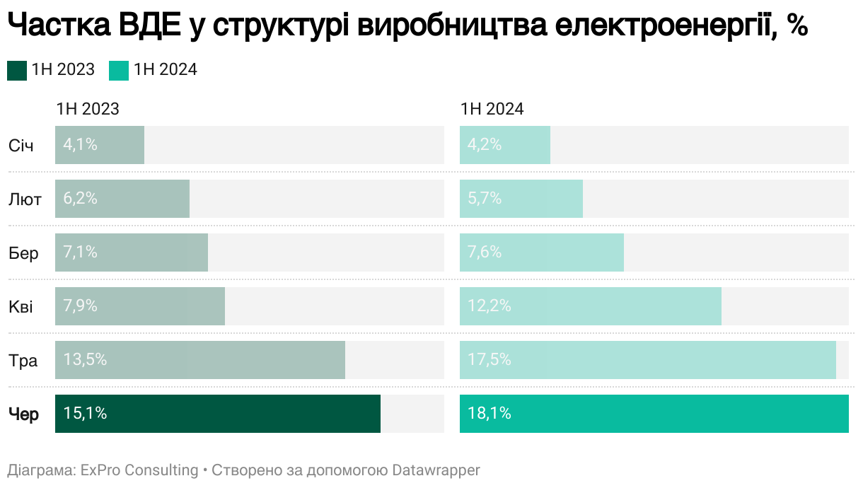 Частка ВДЕ у структурі виробництва електроенергії, %