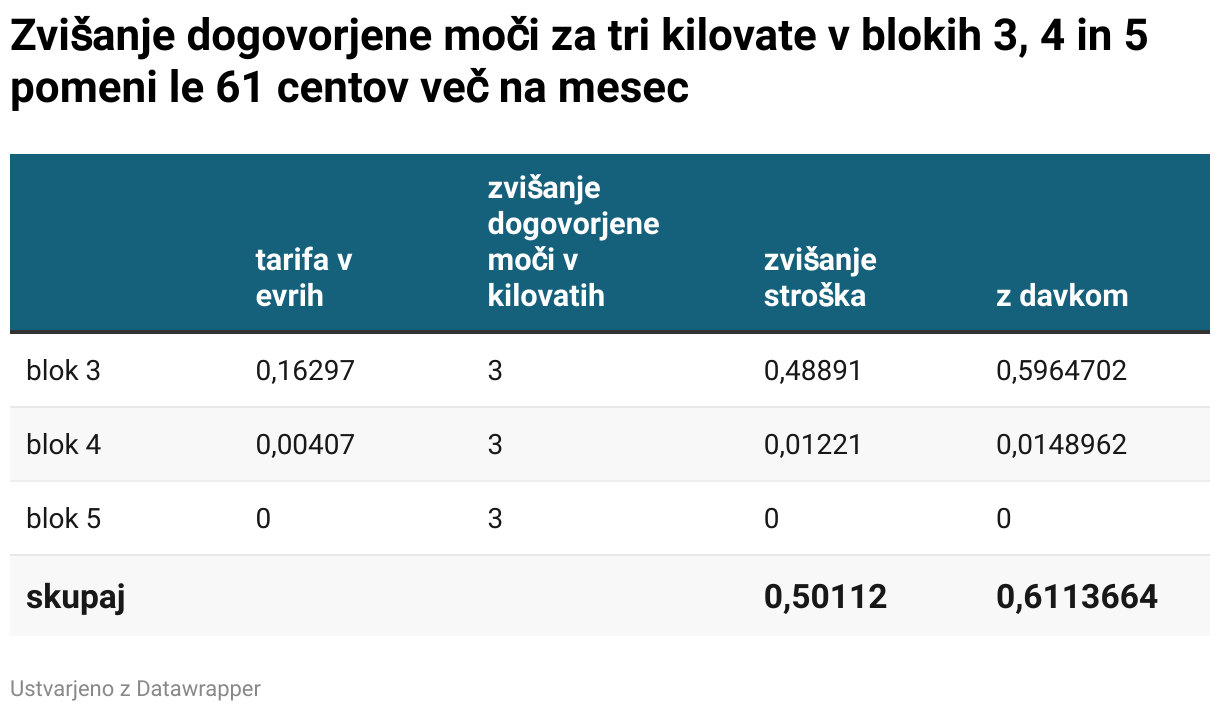 Zvišanje dogovorjene moči za tri kilovate v blokih 3, 4 in 5 pomeni le 61 centov več na mesec