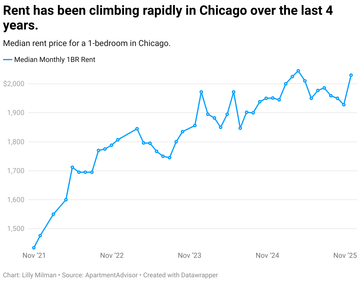Median rent price for a 1-bedroom in Chicago.