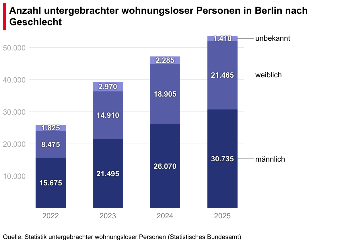 Anzahl untergebrachter wohnungsloser Personen in Berlin nach Geschlecht