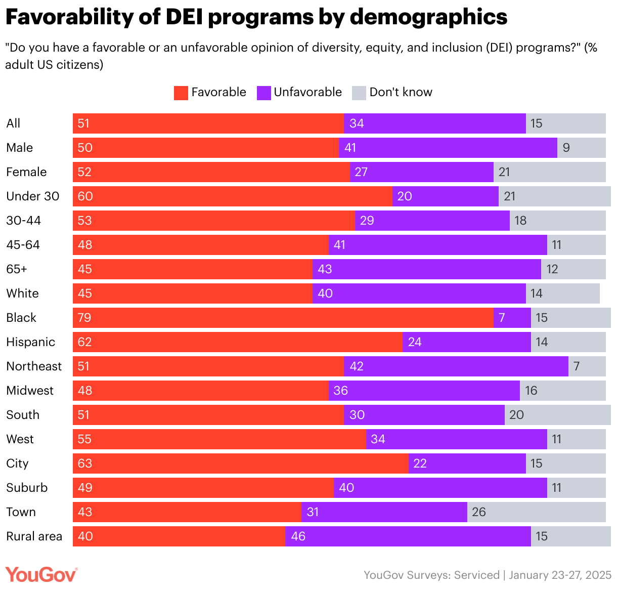 "Do you have a favorable or an unfavorable opinion of diversity, equity, and inclusion (DEI) programs?" (% adult US citizens)