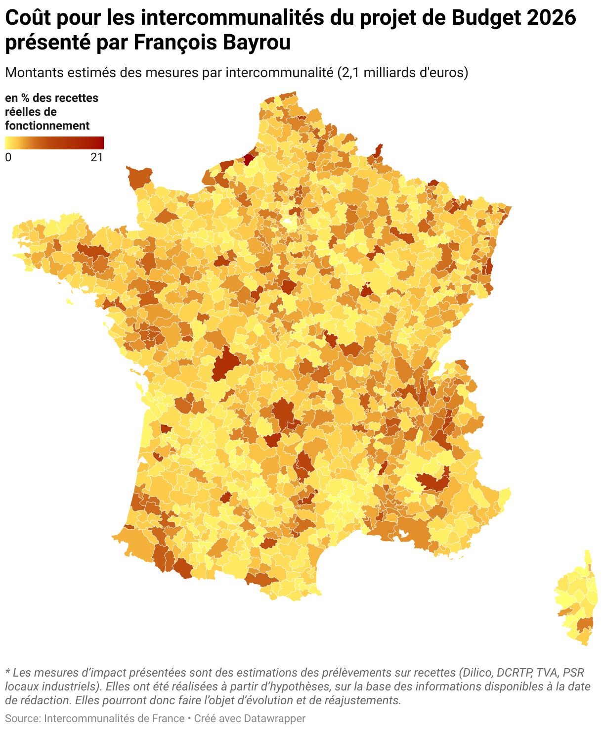 Montants estimés des mesures par intercommunalité (2,1 milliards d'euros)