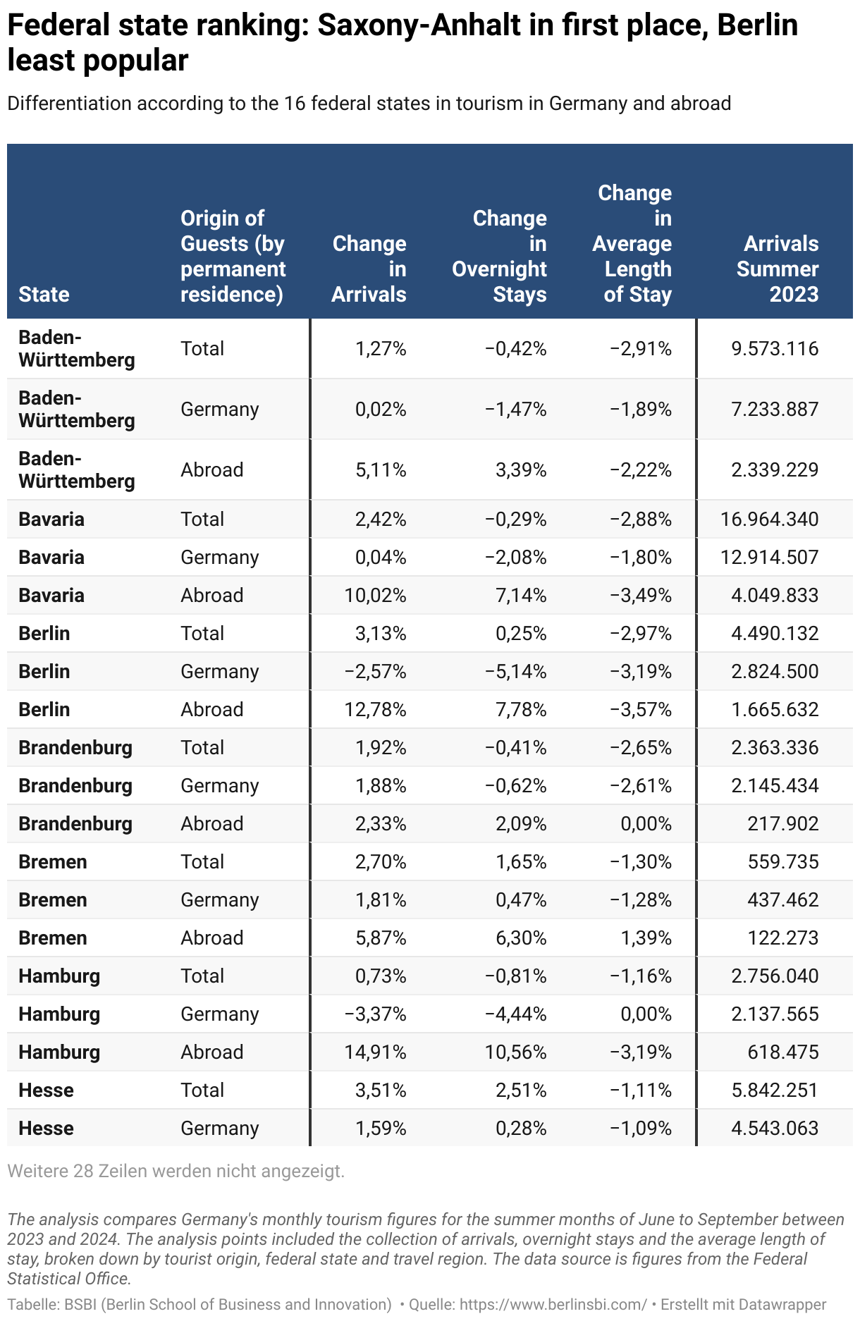 Differentiation according to the 16 federal states in tourism in Germany and abroad