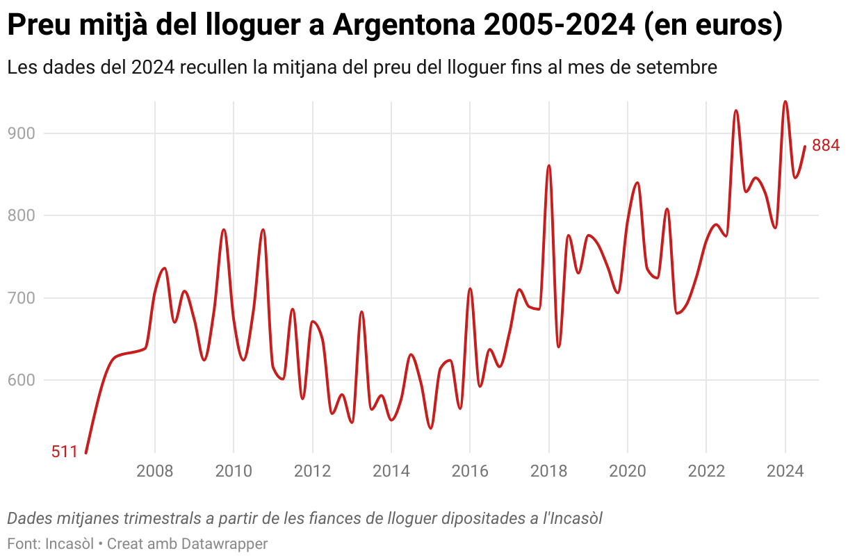 Les dades del 2024 recullen la mitjana del preu del lloguer fins al mes de setembre
