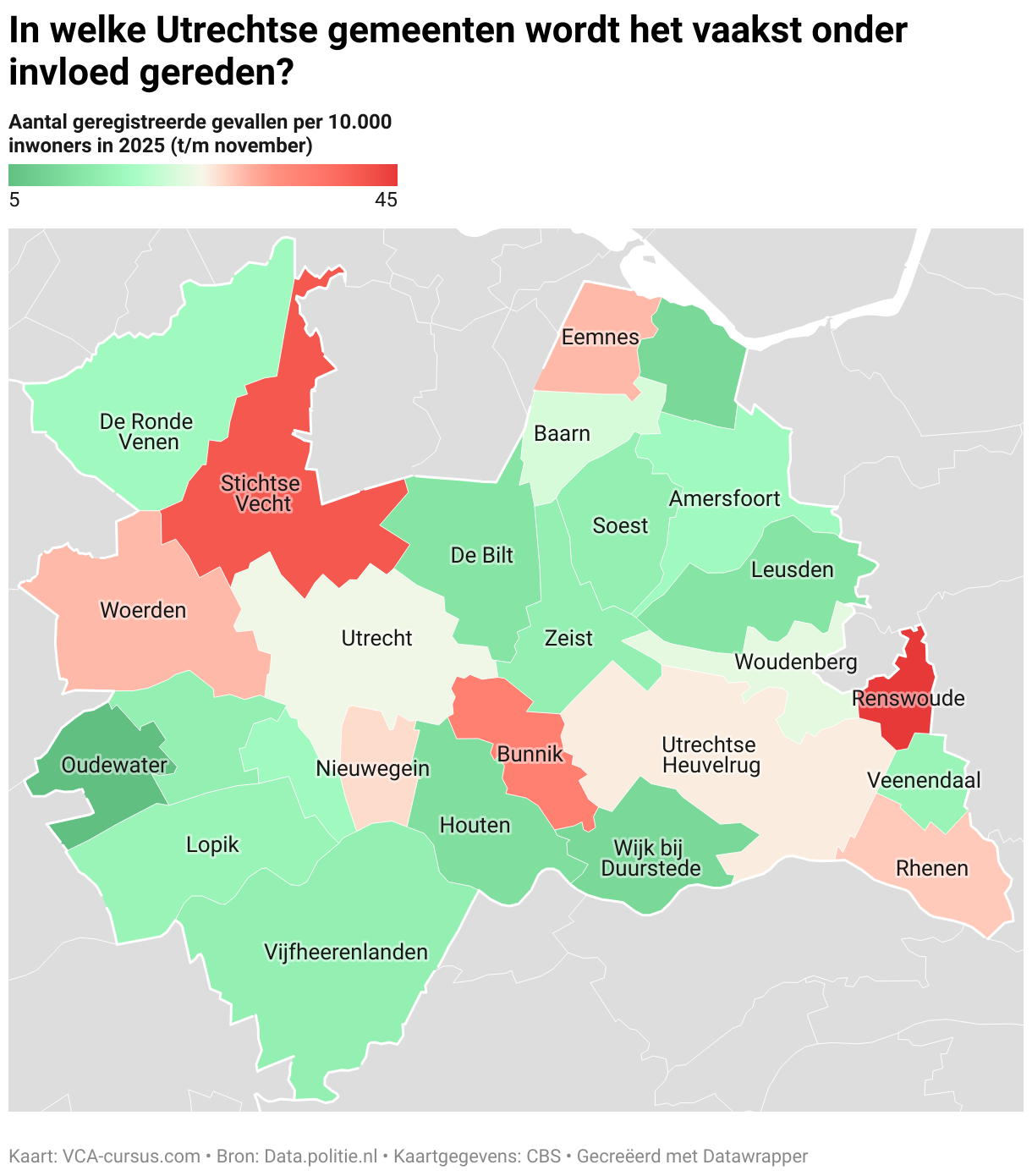 In welke Utrechtse gemeenten wordt het vaakst onder invloed gereden?