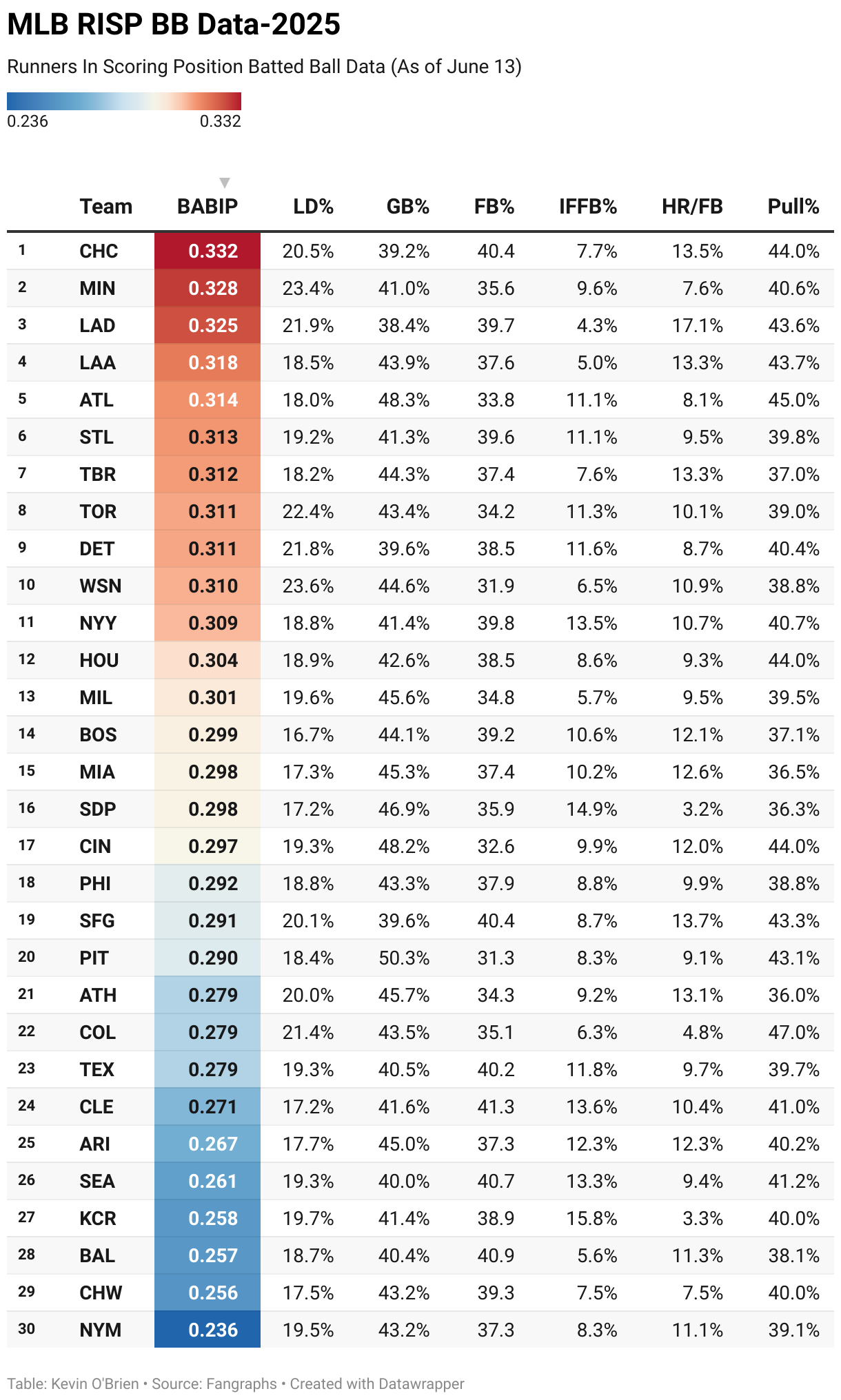 Runners In Scoring Position Batted Ball Data (As of June 13)