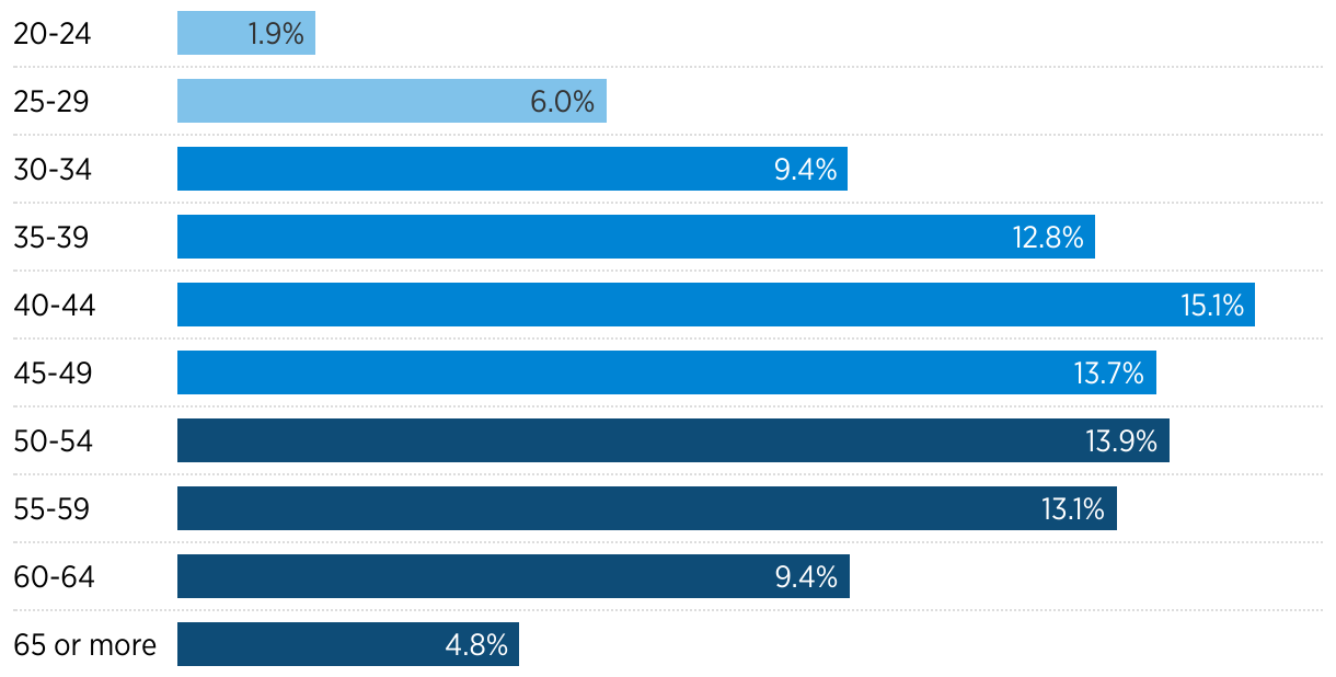 Just over half of the federal workforce outside the D.C. area is between the ages of 30 and 49.