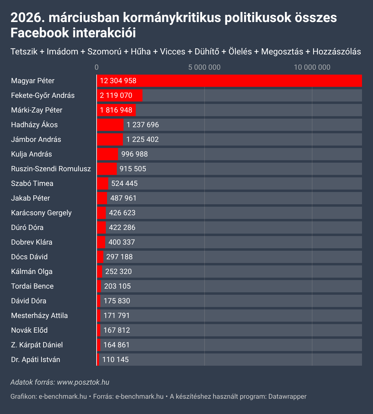 2026. márciusban kormánykritikus politikusok összes Facebook interakciói